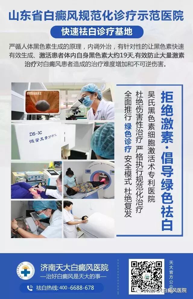 注:网站信息仅供参考,不能作为诊断以及治疗依据,就医请遵照医生诊断 版权所有济南天大白癜风医院Copyrights © 2009 JiNan TianDa All Rights Reserved 鲁ICP备12031946号-2 济医广审字[2020]第0424-039号